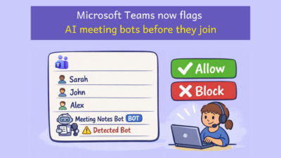 Microsoft 365 Teams3 Min Read Mezba UddinonMarch 15, 2026 Microsoft Teams Detects External Meeting Assistant Bots Joining Meetings AI meeting bots, tools that transcribe, summarize, or record your conversations, have quietly become a fixture in online meetings. Many are…