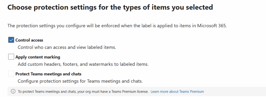 - In the Choose protection settings for the types of items you selected page, select Control access -> Next.